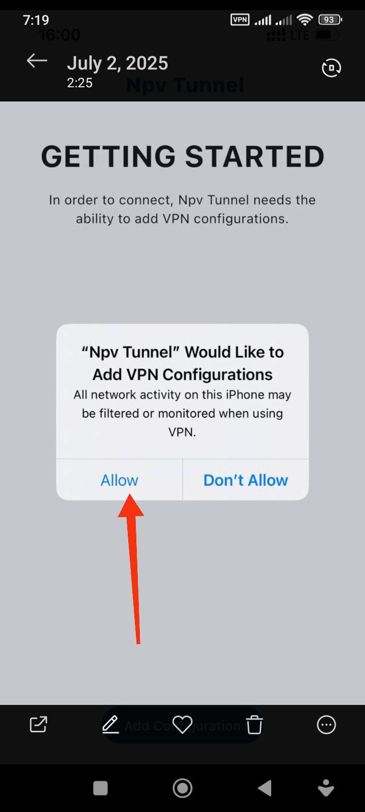 یکی از برنامه های خوب و مناسب برای این روزهای پر از اختلال استفاده ازکلاینت NPV TUNNEL در آیفون و اندروید میباشد، برای وارد کردن کد کانفیگ در آیفون و اندروید برنامه NPV TUNNEL را از نصب نمایید، سپس طبق مراحل زیر اقدام نمایید 👇