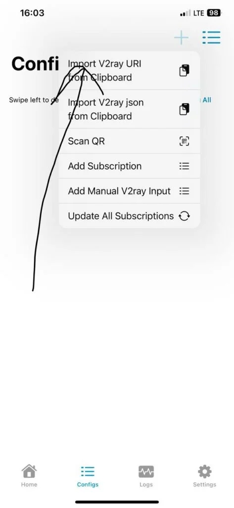 3 در این مرحله گزینه Import v2ray url from clipboard را انتخاب کنید.