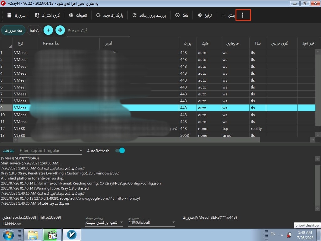 8 توجه داشته باشید که برای وارد کردن کانفیگ در برنامه به روش بسیار ساده کپی و پیست نیاز دارید و برای انتخاب کانفیگ روی کانفیگ کلیک کرده و اینتر را میزنید و تمام.