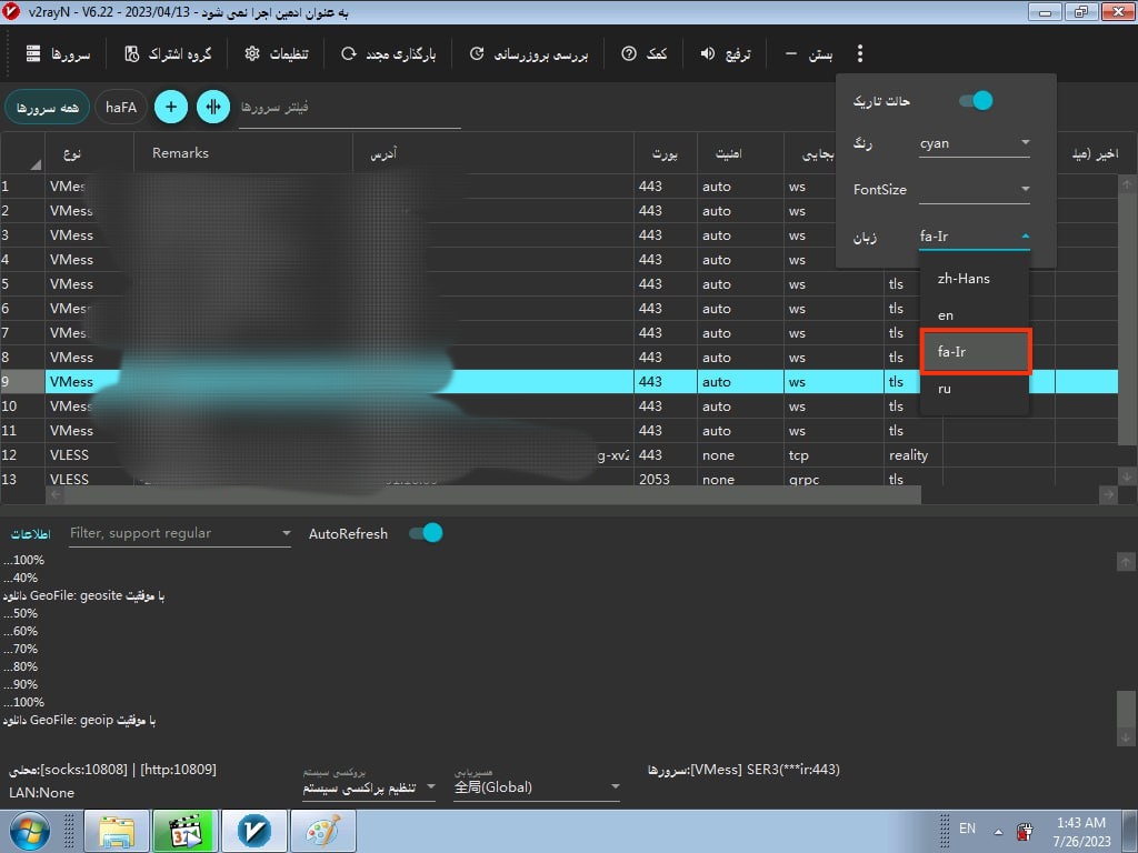 3 منوی کشویی برای فارسی گزینه fa-Ir و برای انگلیسی گزینه en را انتخاب کنید و یک بار بطور کامل از برنامه خارج می شوید یا سیستم را ریستارت میکنید تا زبان شما تغییر کند.