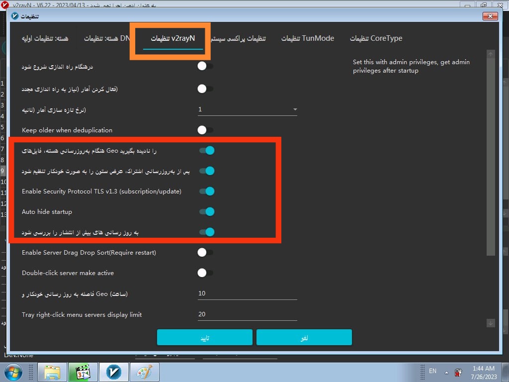 4 برای دریافت آپدیت Xray-Core راه اندازی کانفیگهای ریالیتی (Reality) در برنامه وارد تنظیمات شوید.